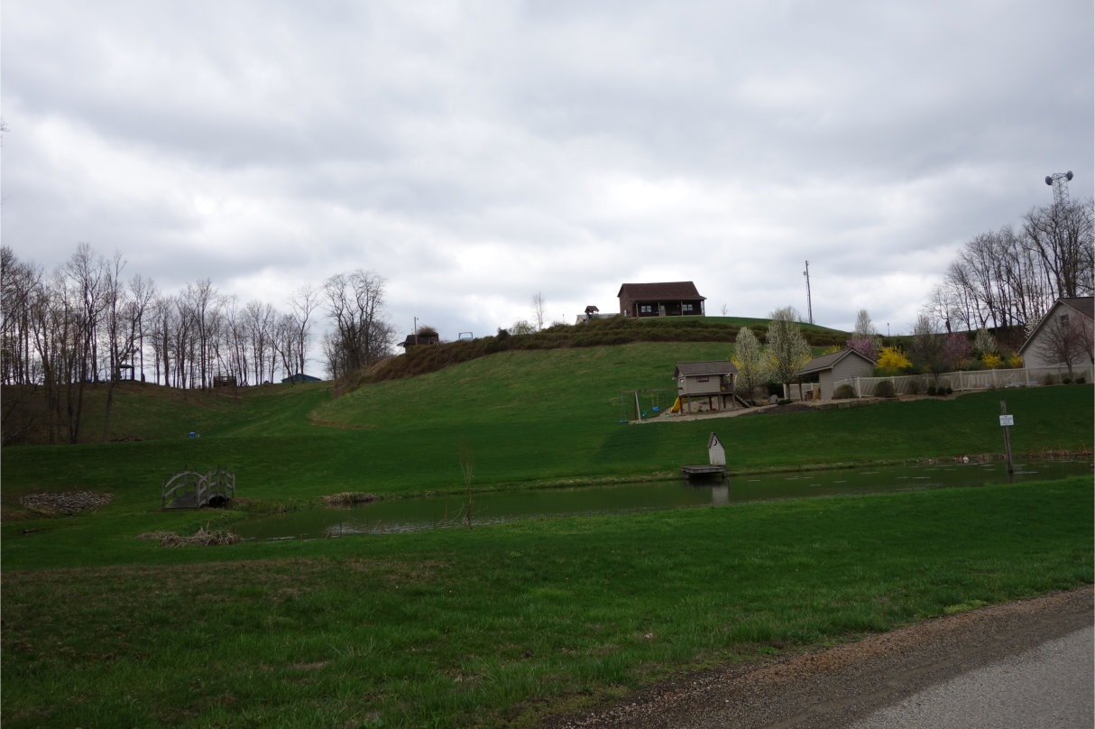It didn’t take me long until I got into the countryside. I took this excursion on April 13, so the ground had gotten pretty green, but the trees were still leafless, as the below photograph of a well-kept farmhouse indicates. It also illustrates something that amazes me about rural Ohioans—how much they love to mow. So many of them deliberately create huge lawns for themselves, an entire field’s worth of a lawn, then spend all their free time on riding mowers keeping the darn thing looking nice. If we could somehow harness the energy of Ohio lawn mowing, we could power the world. This is something that is alien to me. When I was a child growing up in El Paso, my father made me do all of the yardwork. This included forcing me to use a pick-axe (!) to chop at grass growing against our rock wall (because he wouldn’t buy a weed-wacker). That used up my entire lifetime supply of lawnwork energy. Today I pay a guy to keep my small yard looking nice. But if I had a huge gollywhopping lawn? I don’t know what I’d do. ![]()