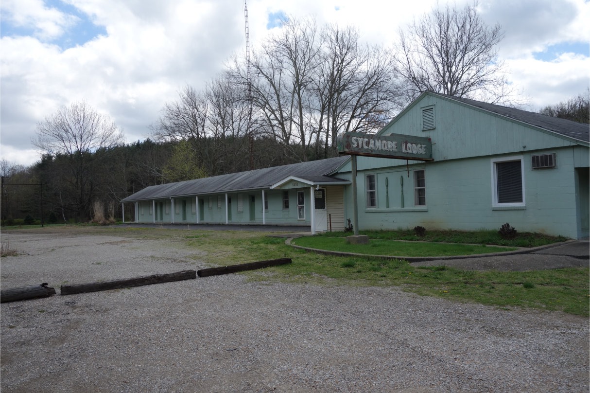 You just can’t get very far down U.S. 40 without finding more old motor hotels killed by the Interstate Highway System. These pictures are of the Sycamore Lodge outside of Zanesville, Ohio. I searched on the name of the place and discovered someone had recently sold an old postcard of the hotel on E-bay. I include those images as well.