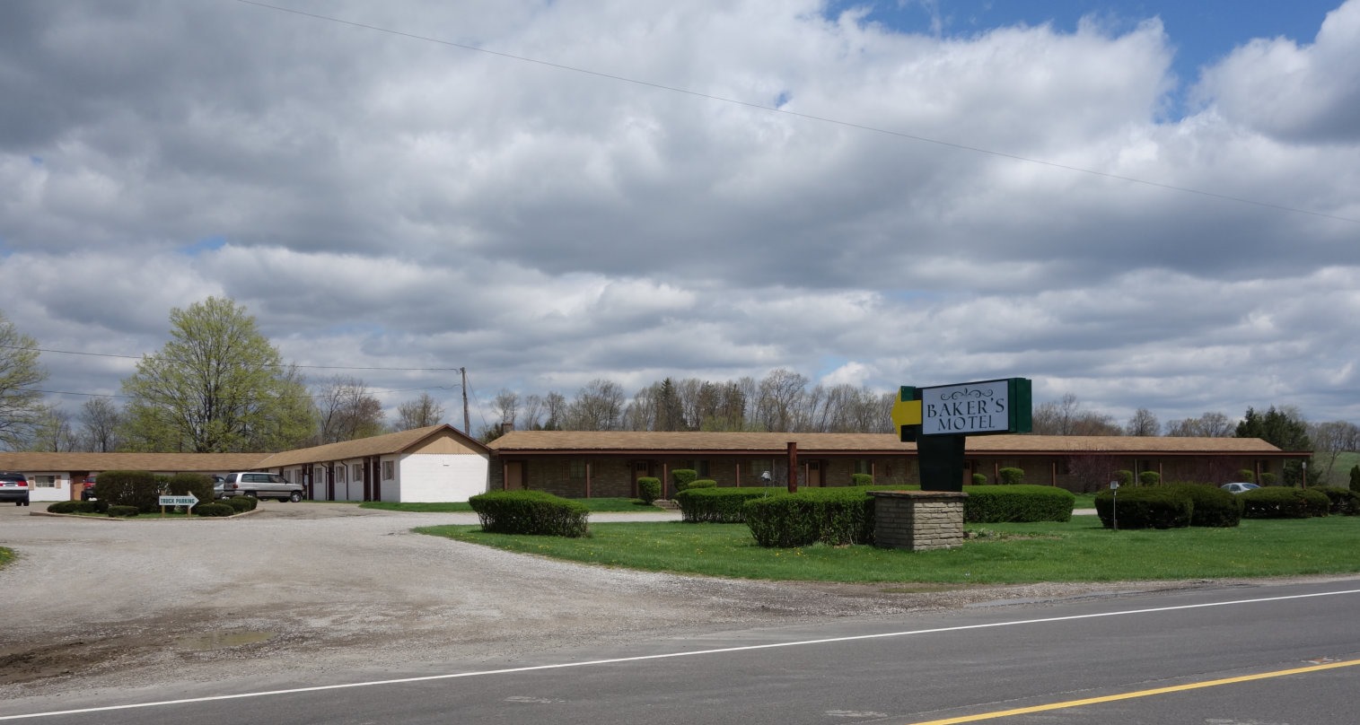 The Baker’s Motel, in tiny Norwich, Ohio (population 102, salute!) is one of the few operating old motels along U.S. 40 that look pretty decent. It even has its own website, which informs us that the motel was built in 1937. The fact that it is close to Muskingum University may be what has enabled it to survive pretty well.