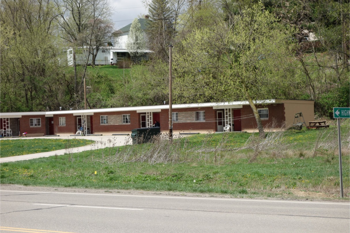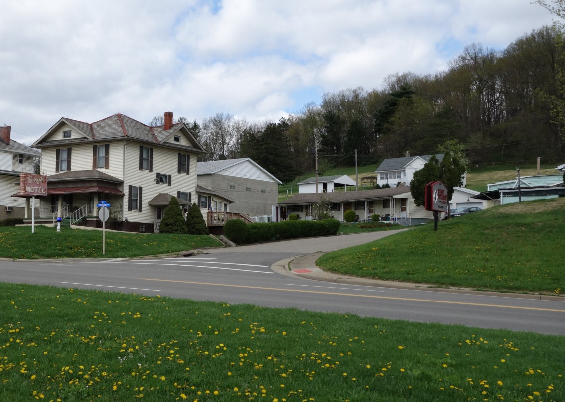 Eventually, U.S. 40 took me to Cambridge, Ohio (population 11,129, salute!), which is probably about 35 miles east of the West Virginia border. Most people see it from the perspective of I-70, but it looks a bit different coming in through the backdoor. Instead of the major hotel chains that line the freeway exits, you get establishments like the below inn. Generically labeled “motel,” I was able to determine, with the help of some Internet research, that it is actually the “Frisbee Motel & Apartments.” The few on-line reviews seemed to agree on the copious amount of cockroaches. Decades ago, it looked rather more cheery.![]()
