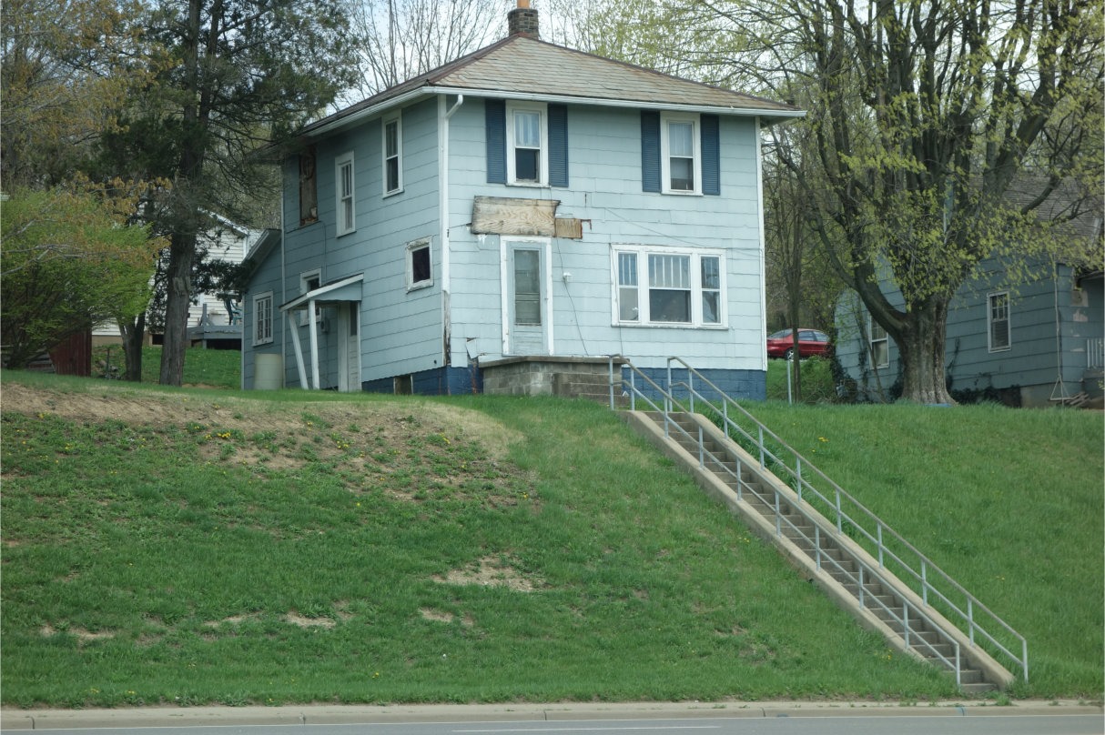 Finally (for this leg of the journey), a shot of a dilapidated house in Cambridge, with another set of those long steps that nobody actually climbs. ![]()