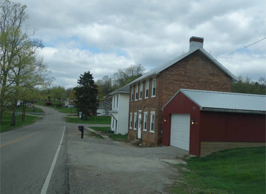 I came across a cluster of old buildings accidentally, out of the corner of my eye, while basically just trying to find how to get off I-70 back onto U.S. 40 (they merge at times) at Old Washington (population 279, salute!). The brick building below is one of them. The style combined with the clear age of the building (bricks age in a very obvious way) makes me think that this building could date back to the mid-19th century. It is actually a place of business today (see a couple of pictures down; it is a tanning/beauty salon).