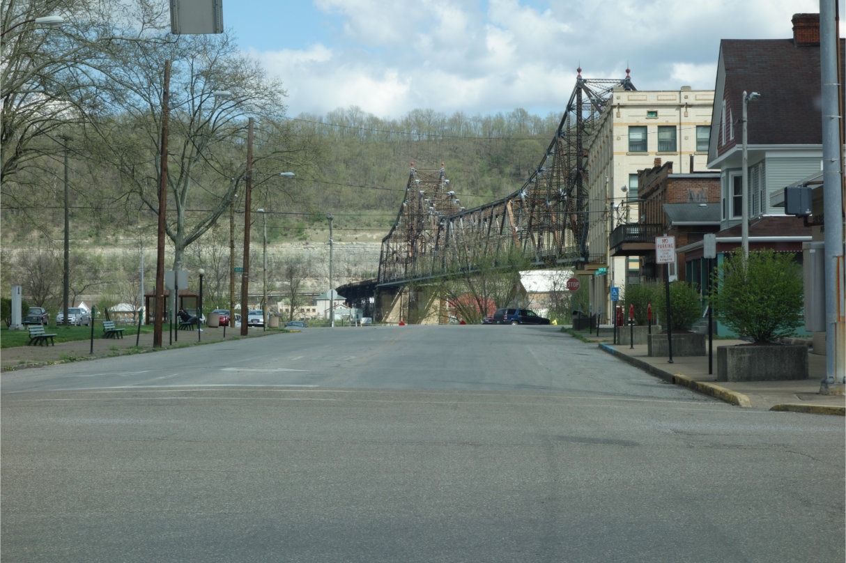 Any time a town has lost more than half of its population, it is almost guaranteed to have plenty of derelict or decaying buildings. Still strong, though, is this bridge over the Ohio River.![]()