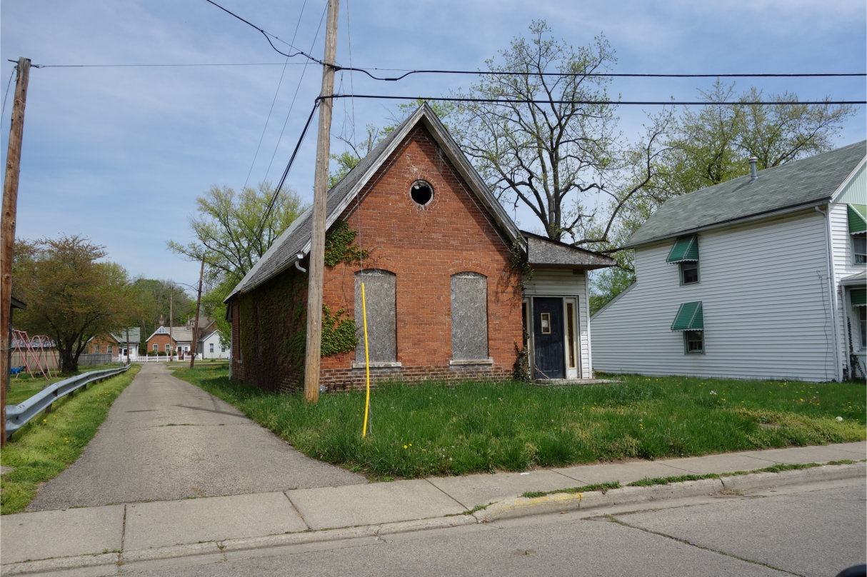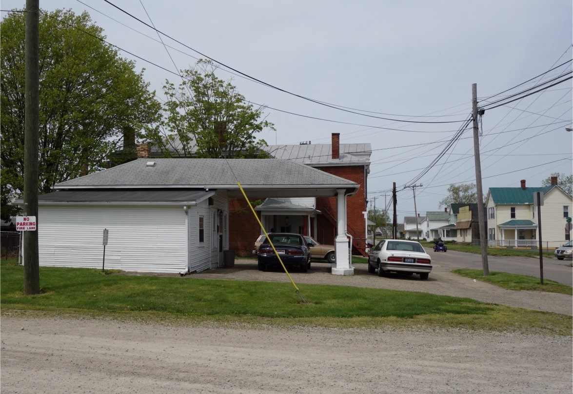 This particular building is fairly unremarkable, except for what it represents. Small town and rural Ohio are full of these buildings, which are, of course, old gas stations. Many have been torn down—as have almost all such buildings in urban areas of Ohio—but some have been repurposed and others just left alone. The building below is one of the latter; it seems to serve no function other than as a parking lot now. ![]()