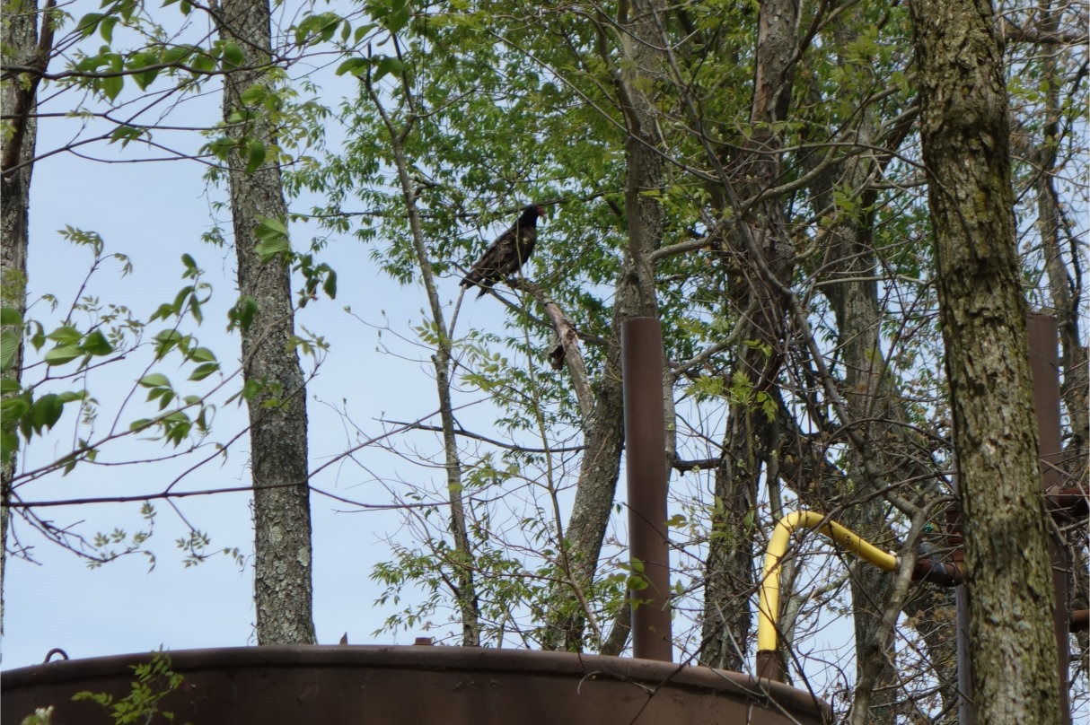 One stop I made resulted in this not very good picture. I turned the corner on a back-country road and came across a whole flock of turkey vultures around an oil tank. Before I could get my camera up, they had taken off, as they are wont to do, but one inquisitive fellow stayed just a couple of seconds longer than the others to give me a look. I took a quick handheld shot here but he took off before I could put the camera on its vehicle mount. I’ve been able to take some better turkey vulture pictures in later excursions.