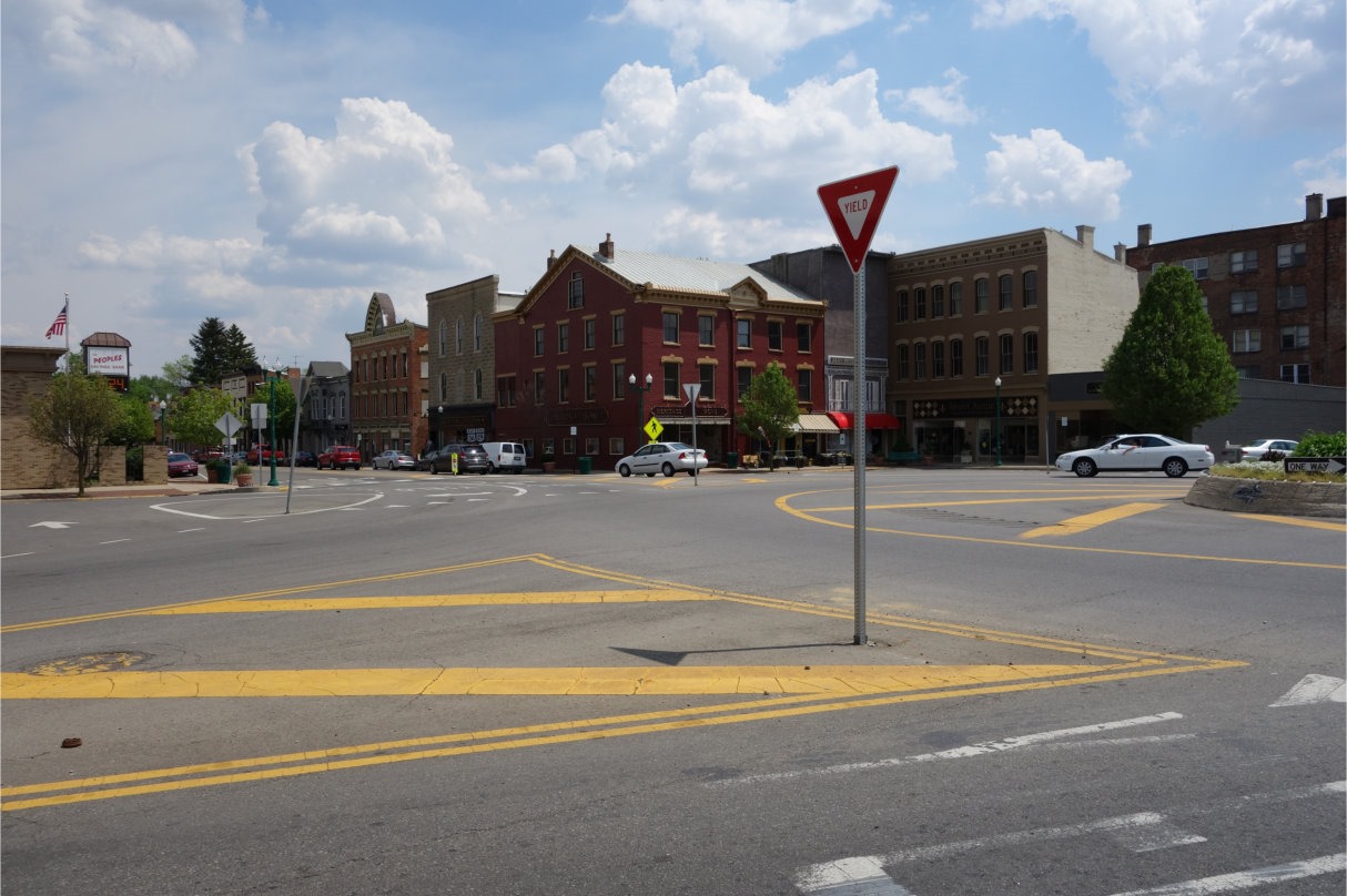 Here’s a shot of Urbana’s traffic circle or “roundabout.”  A great many old Ohio towns have these in their town center.  Urbana’s town center is quite attractive.