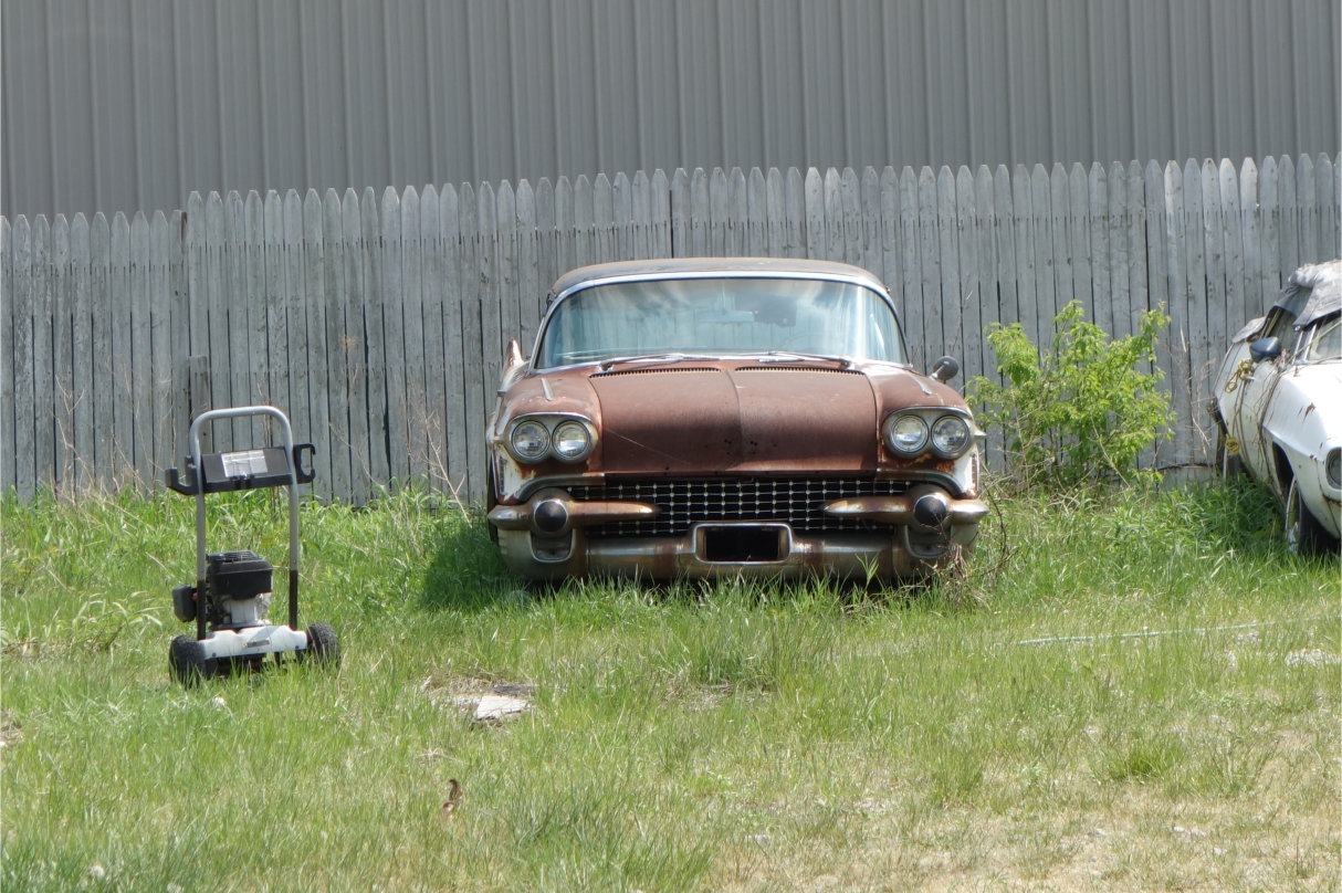 When I saw this vehicle, I had a flashback to the Stephen King novel “Christine,” about a haunted 1958 Plymouth Fury.  Sadly, this vehicle is not a Plymouth Fury, but it looks a bit haunted regardless, don’t you think?