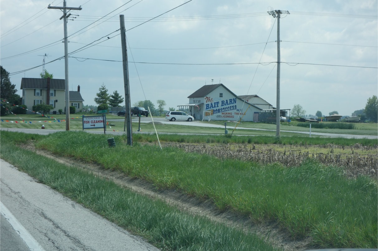 Much of the local economy is centered around such fishing.  Here’s The Bait Barn, as well as a sign for someone offering fish cleaning services.  I didn’t even know that was a thing, although I confess I’d probably take advantage of it, as I like fish and have enjoyed fishing, but am not crazy about animal guts.  I remember one time when I was around 11 years old or so and my father took me along to see a friend of his who was going to slaughter a pig.  The shooting of the pig did not bother me, but I was not prepared to see the pig bleed out—someone slit the dead pig’s throat, and blood gushed out of the pig in a big scarlet river.  I had to quickly move away because I was afraid I might throw up.  I hadn’t realized how much blood there was in a body and wasn’t ready for that.