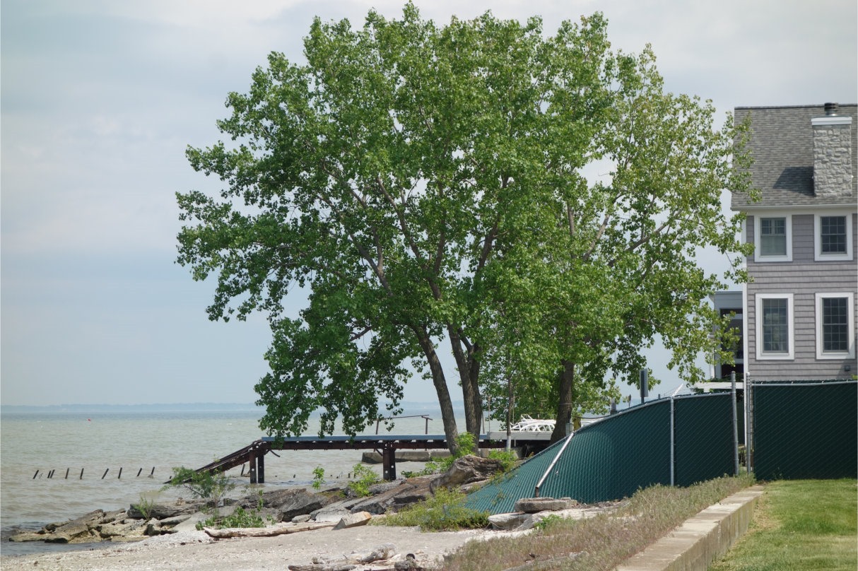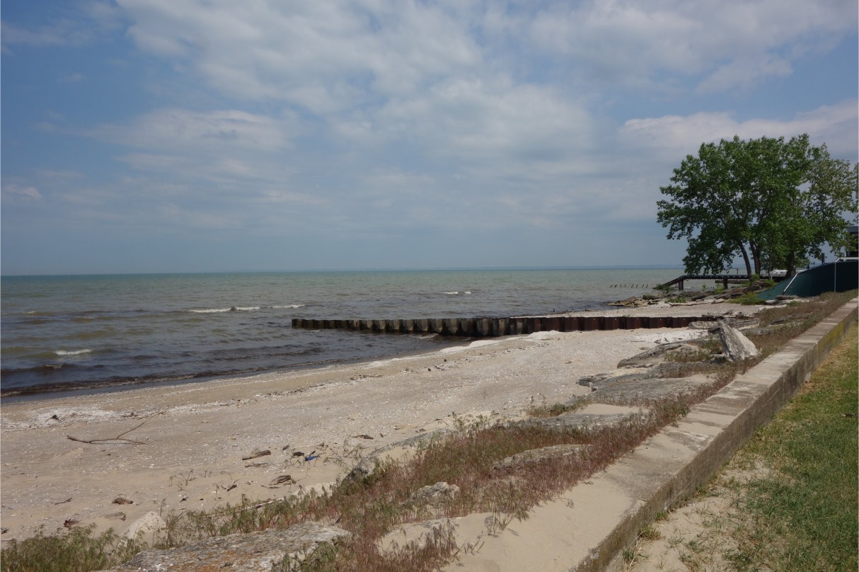 exc8pt5-14 exc8pt5-15At last!  At Camp Perry I finally was able to stand on the shores of Lake Erie.  Sticking out from the left is the Camp Perry pier (the words Camp Perry are spelled out on its side).