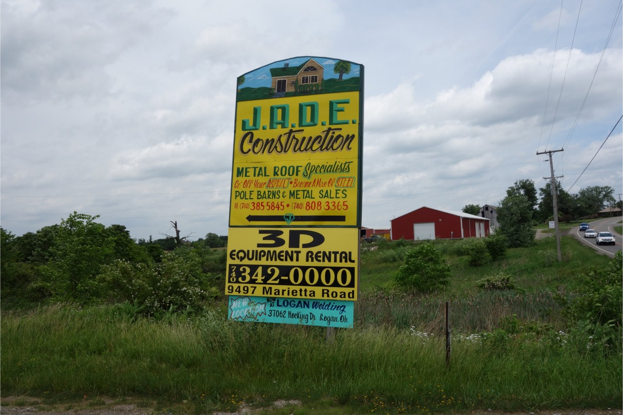 exc9pt3-1 Luckily, signs don’t pose such problems, such as this sign not far outside New Lexington, Ohio, in Southeast Ohio.  It is, I admit, a totally unremarkable sign, but for some reason I couldn’t not document the phrase “Get Off Your Asphalt – Become a Man of Steel.”