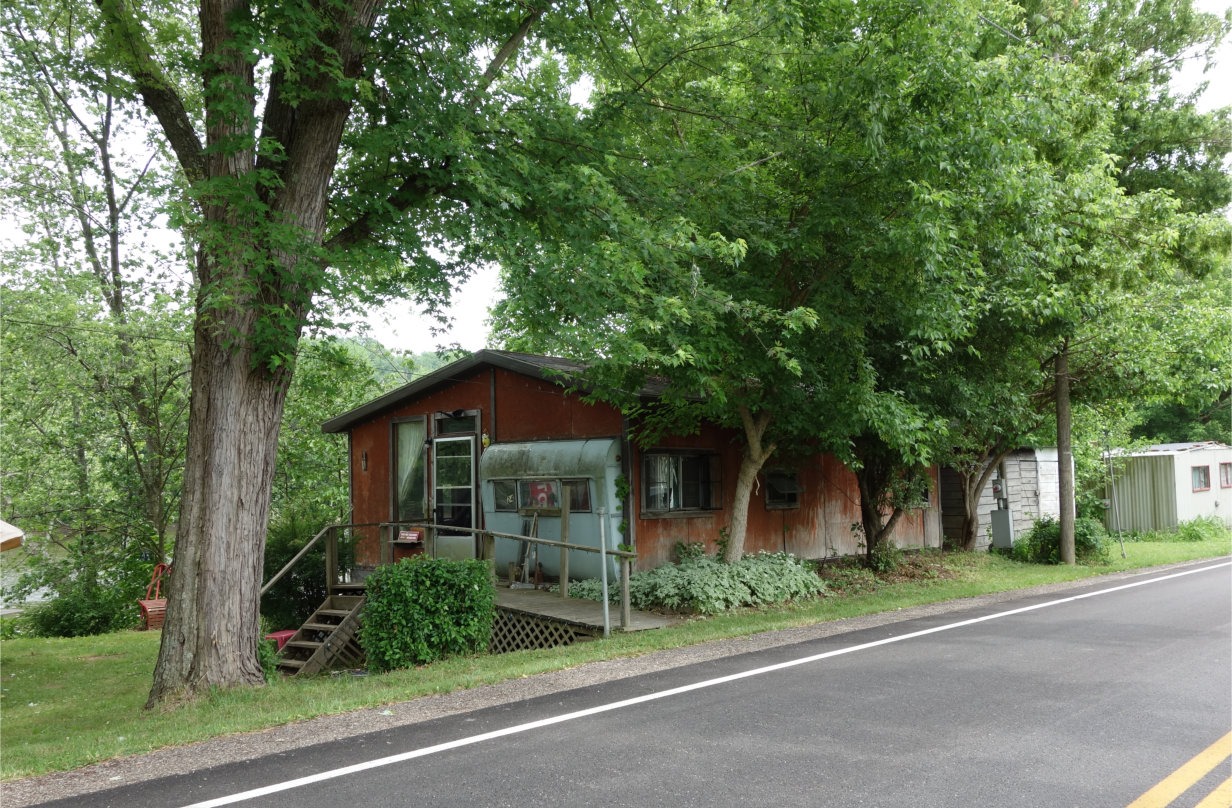 exc9pt3-18 I still am surprised whenever I find this form of architecture, which prior to 2013 I did not even know existed:  the melding of house trailers and conventional house-like structures.  I really don’t know what the rationale is to these—what advantages do they offer?  Clearly, the trailer would have basic appliances and facilities in it, that would not have to be installed in the building otherwise, but that can’t be very cost effective.