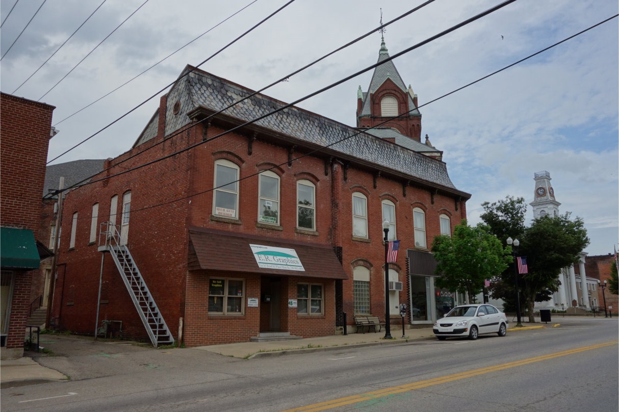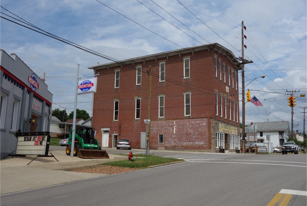 Down the Muskingum a bit is the village of Beverly, Ohio (population 1,313, salute!). With this Beverly building, as with many such older buildings, current usage is less distinguished than originally. Once some sort of commercial building, now it is home to “The Cornerstone Inn,” which boasts “homestyle food” and “traditions from Mother’s table.” Only a short while ago, the building was home to “King’s Furniture,” which used all five floors of the building. The furniture store went out of business in 2009 after some 50 years in operation, killed by the recession.