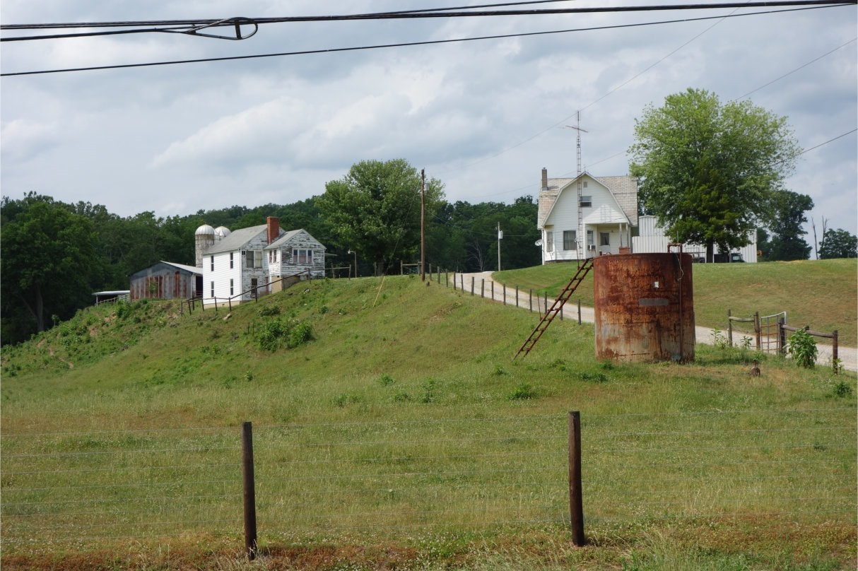 Old house, old farm buildings, old tank, and scraggly hill-pasture. What’s not to like?