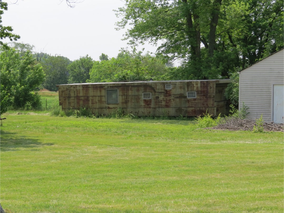 As a coda, I present this very oddly weathered mobile home resting quietly behind a row of houses in rural Ohio not far from Troy.