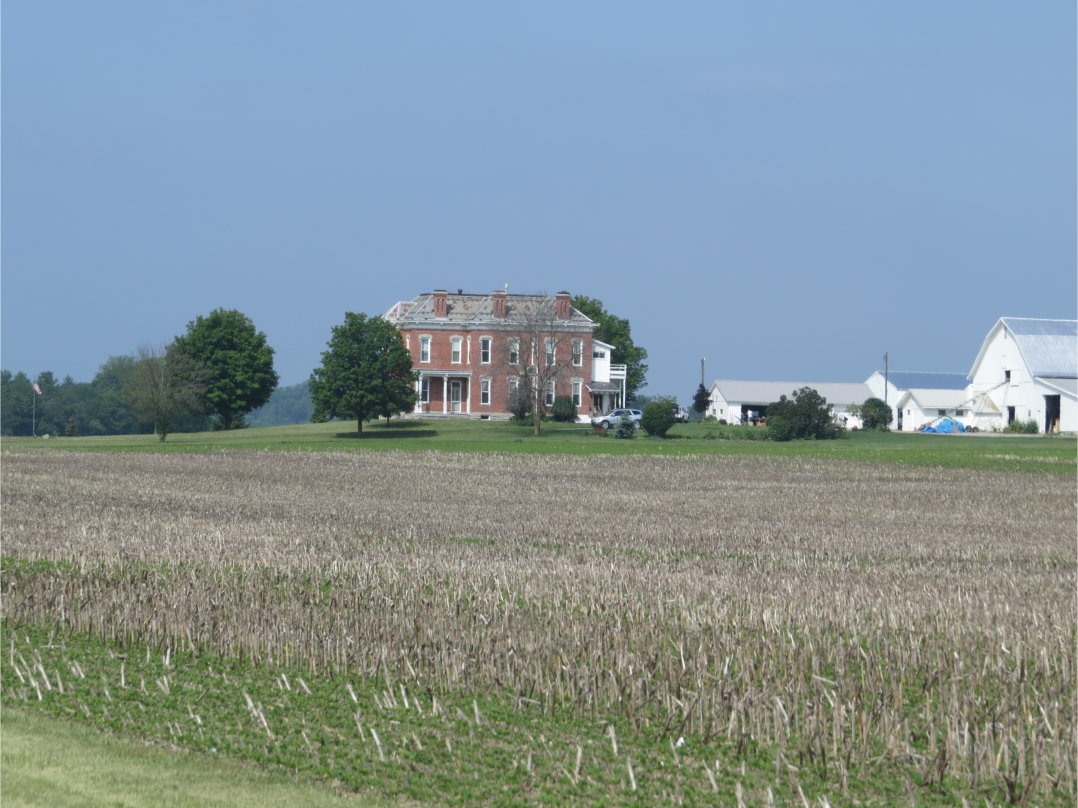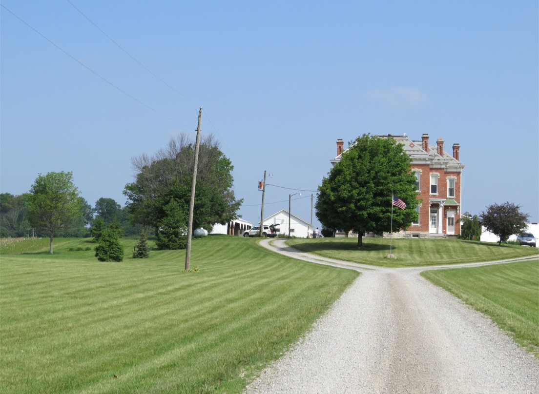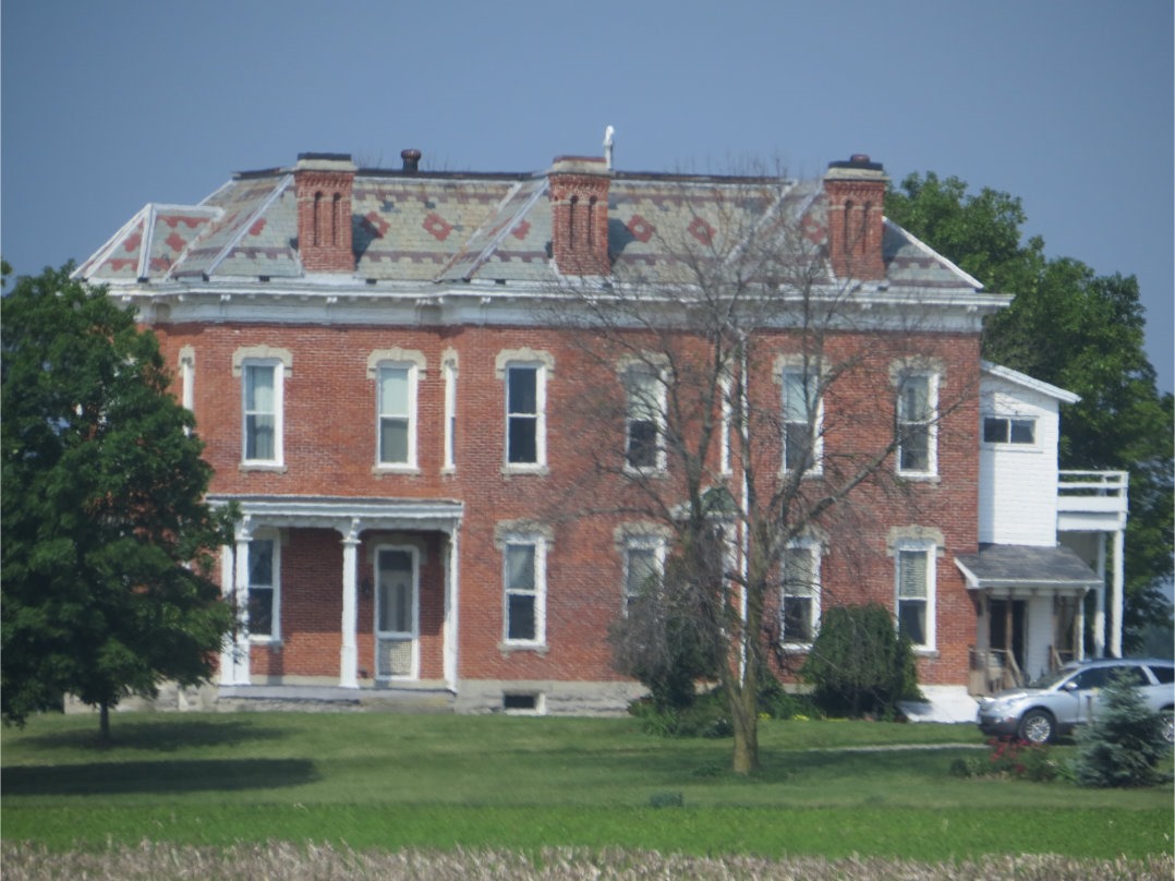 As I was driving through west central Ohio, in Union County, I spotted in the distance a massive house that was clearly at least a century old. It is visible from some distance in this flat region of Ohio because it is built on a slight swell of ground. I zoomed in for the above photograph.
