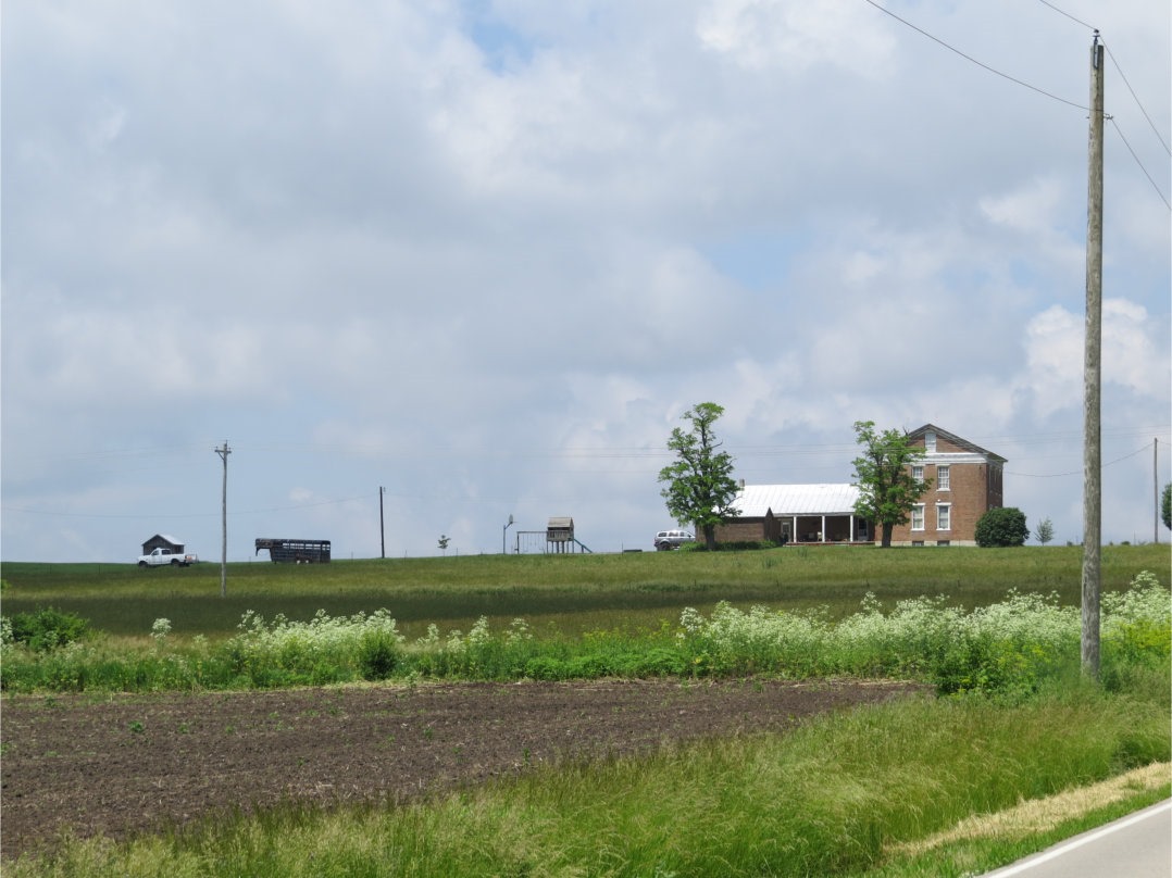exc11pt2-5 Here’s a more close-up shot of that farmhouse, outlined against the horizon.  It has the typical traditional Ohio farmhouse structure of a tall building up front, with a lower building (probably built later) stretching away in the back.
