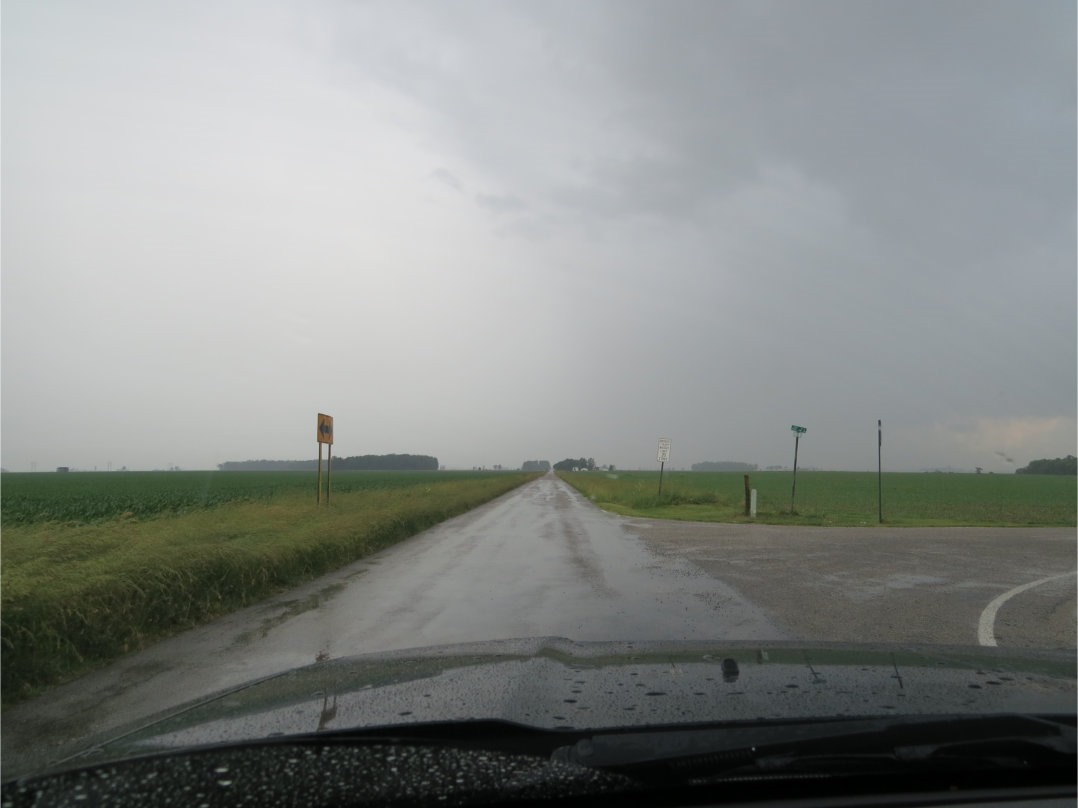 exc11pt2-4 A typical road view from flat southwestern Ohio.  I love to compare and contrast Ohio to west Texas; indeed, some readers may be very tired of my having repeatedly done so in this blog.  This is as close as one really can come in Ohio to a “vista,” though it cannot compare to how much one can really see in the west, where wide open views are much more common.  Eastern Ohio, like much of Appalachia, is far more claustrophobic.  That used to bother me, when I first moved to Ohio, but I got used to it.