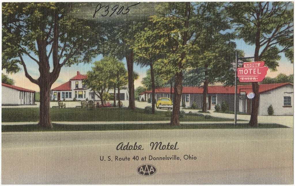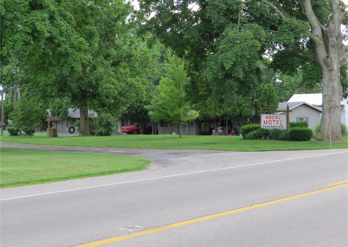 Finally, we come to the Adobe Motel, a name I might expect more from West Texas, where I grew up. This Adobe Motel, however, is no longer an actual motel, but rather a set of low-rent furnished apartments now. It is located a few miles west of Springfield, Ohio.