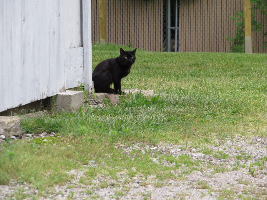 This was a garage at some point, though the wild is reclaiming it. The faded painted sign seems to say, in part, “C & D Tractor.” Presumably it serviced tractors. I have always wondered how this particular architectural style came to be so heavily associated with garages and mechanics. I see it constantly, every time I drive around. Does anybody know if it has a name?