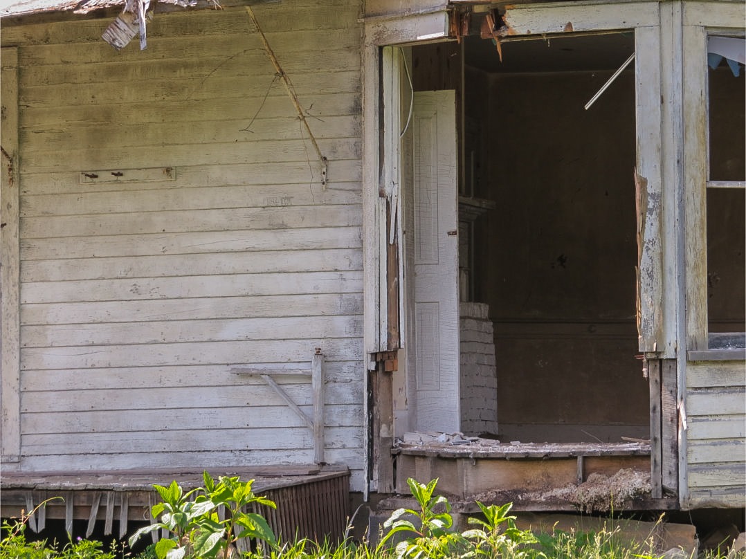 Here’s one last shot of the house, providing a glimpse inside. I must confess to being fascinated about the history of this house. How did it come to be in the shape that it is? Many times, the cause of damage is obvious, but that is not always the case here. What on earth happened to the door frame of this house, for example? It had to be some sort of human interaction, rather than weather or wind. This doorway is like a gaping wound on the house.