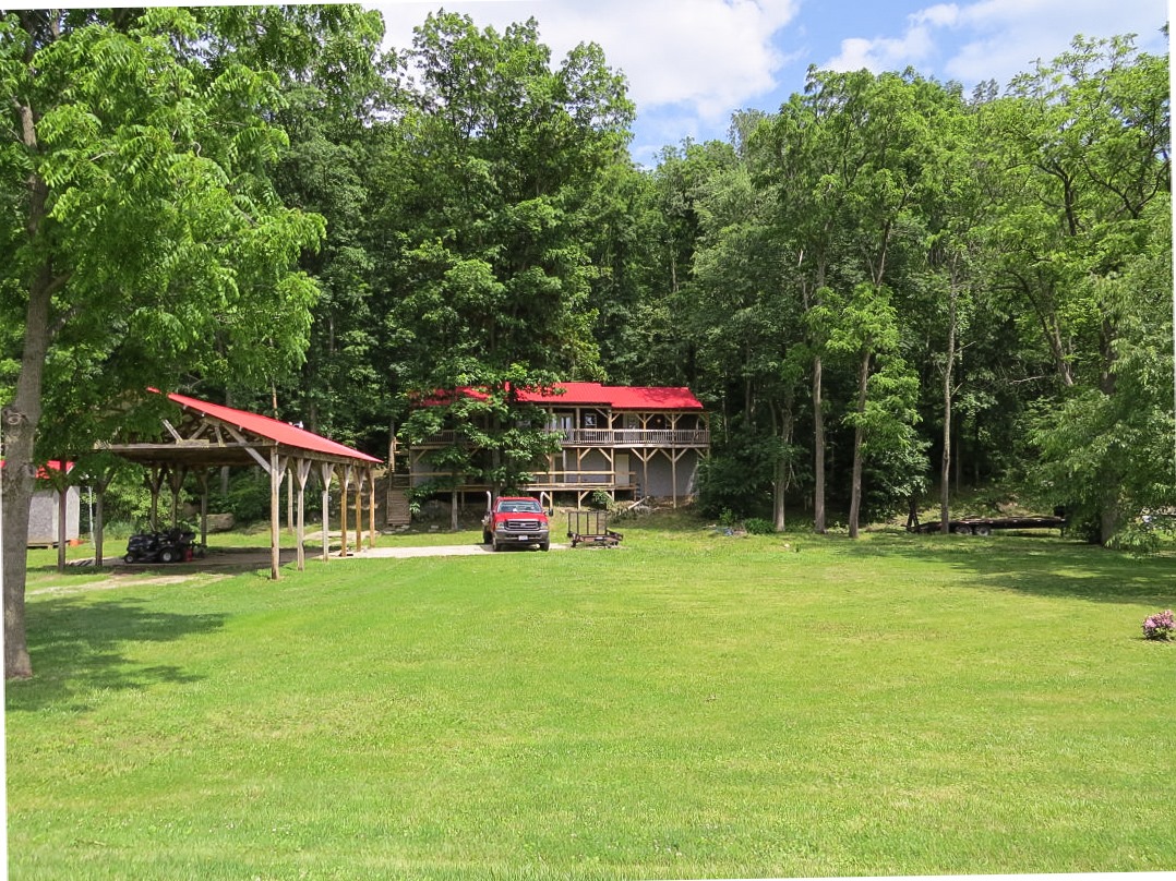 Most houses, even in remote areas of Ohio, are fairly conventional, using standard house designs of their time—when they are not prefabricated or mobile homes to begin with. But every now and then you see a home completely built from scratch, often with a design that is quite distinctive or unique. This large red-topped house, nestled in the woods, is one such example.