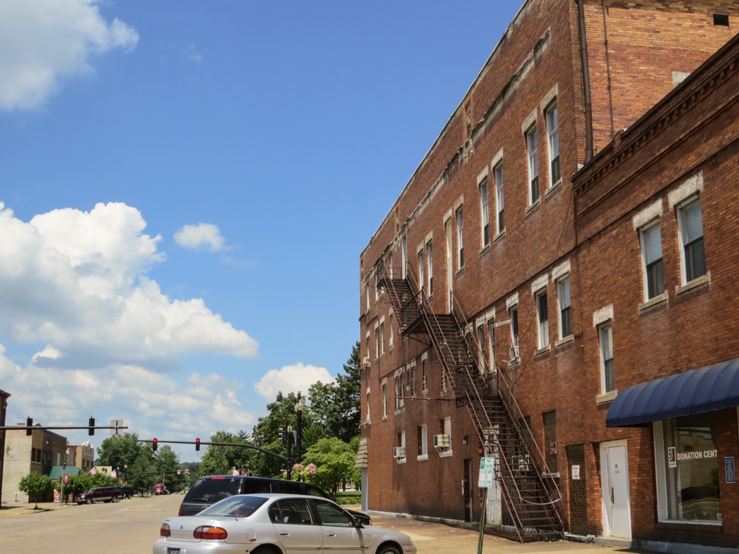 One of the great things about old brick buildings are their old-fashioned fire escapes. I never really became aware of fire escapes as distinct and interesting features until I started driving around Ohio. Now I just love them—go figure.