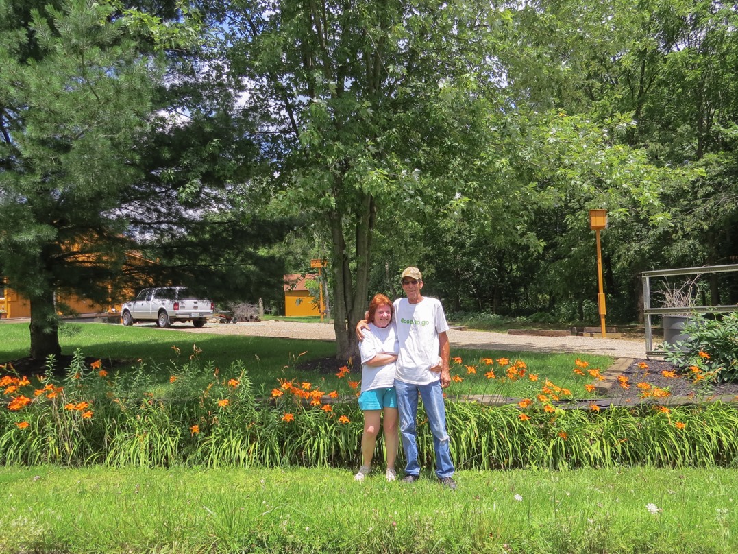 Individual houses as well as farms are also hidden in these woods. I was driving generally in the direction of Coshocton (as it seems I always am), when I came across an orange house with orange flowers and orange birdhouses being tended to by an orange lady. I thought that rather charming and asked if I could take her picture for my blog. She was bit nervous and wanted her husband to be in the picture, so she went and got him. I chatted with the nice couple for a while. You’ll notice I am not mentioning them by name. They gave me their first names, but I did not write them down, not thinking at the time that I would have accumulated six months’ worth of delay in processing and writing about these photographs! Alas, my memory failed me in the interim, as it so often does. But I enjoyed talking with them.