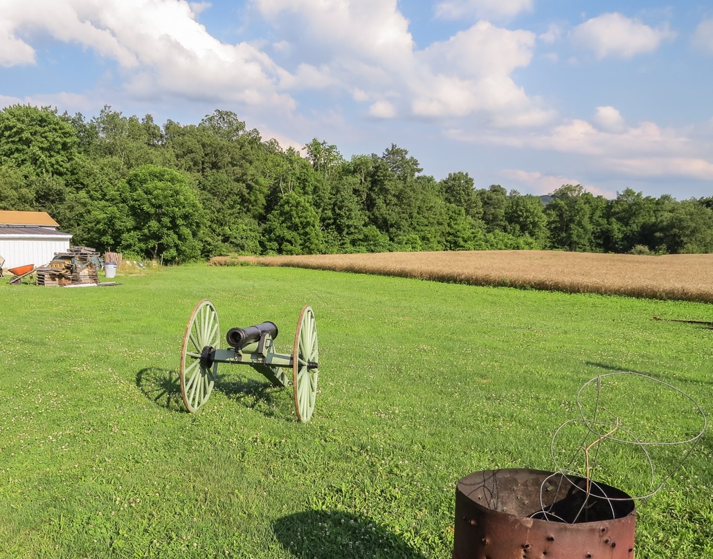 The two of them were in the finishing stages of creating a replica (wooden) Civil War era cannon, which I suppose they were going to emplace near the sculptures. It was actually a very nice job (though small and with thin wheels). They were very excited about it and, actually, the homeowner was just enthusiastic about being able to share his love for the story of Morgan’s raid with someone else. This was one of those unplanned encounters that make trips such as these worthwhile.