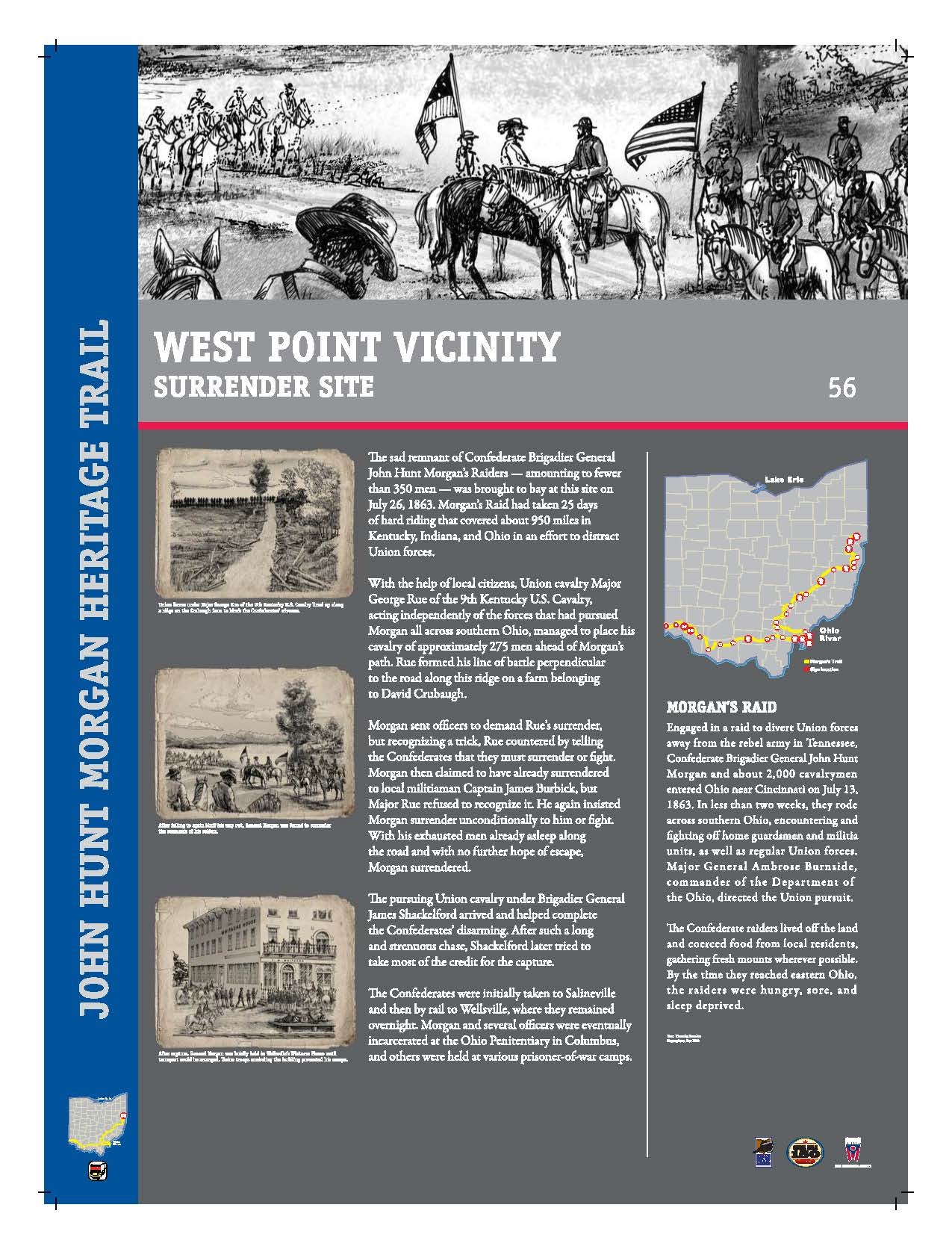 Was Morgan perhaps still thinking of crossing the Ohio River (only about 10 miles away). I don’t know. Ohio raised some 320,000 soldiers during the Civil War (including 5,000 African-Americans). Over 35,000 of them died during the conflict, touching most families in Ohio. But this was the only time the war itself touched Ohio soil.
