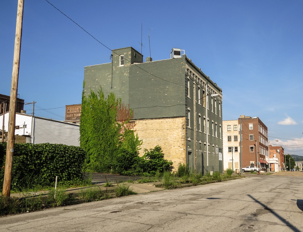 The combination of deserted streets and extreme foliage growth gives downtown East Liverpool a bit of a post-apocalyptic air. At any moment, zombies are going to start shuffling out of this abandoned building.