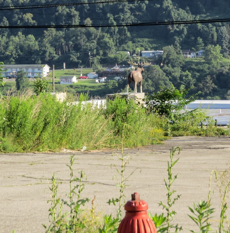 For some reason, a moose stands as a lonely sentinel along the river, guarding East Liverpool from whatever evils might seek to infiltrate the town from Pennsylvania.