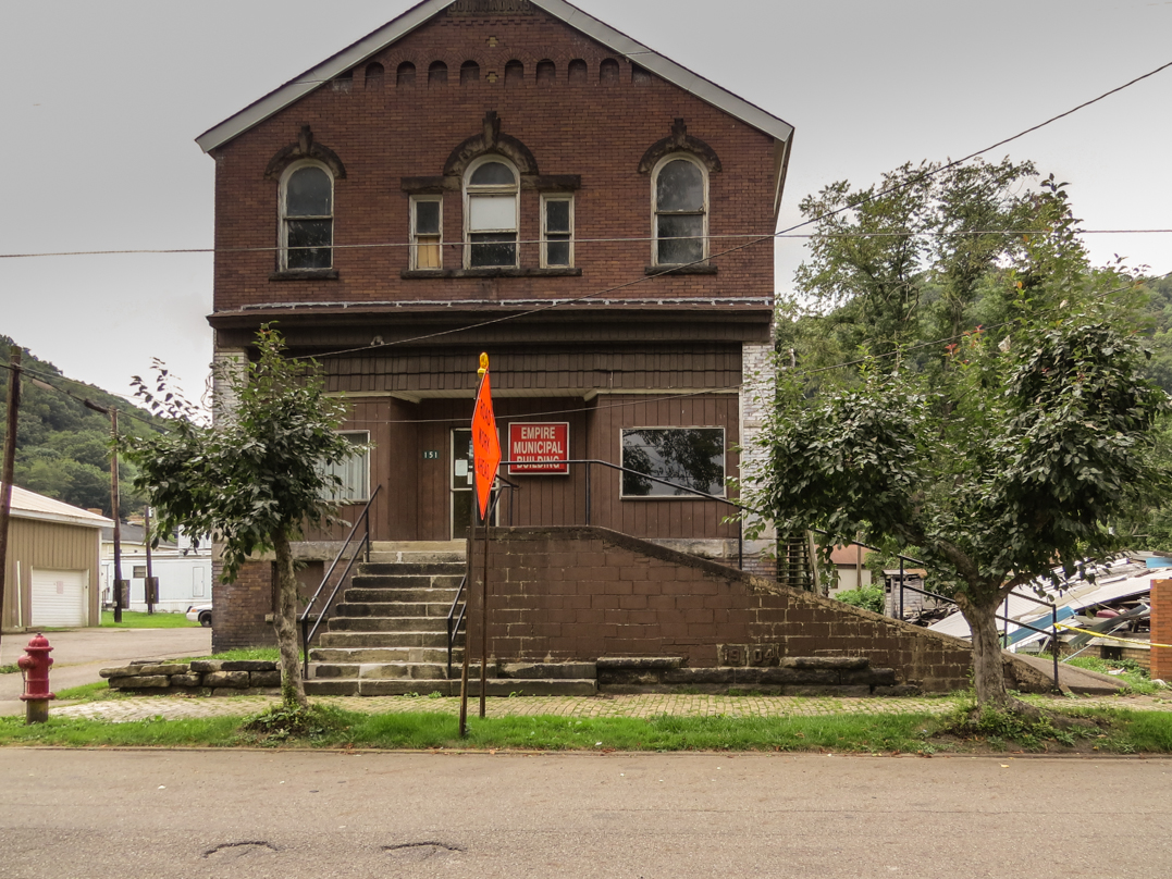 The next place up the river is the unincorporated hamlet of Empire, Ohio, with a population of around 299 (salute!).  Most people probably work at the power plant.  Here’s its rather decrepit town hall.