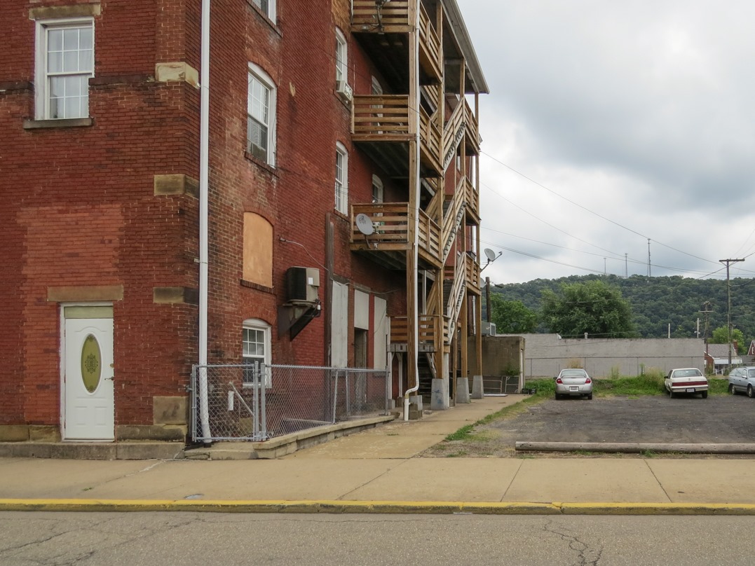 This is Shoub Towers, an old-style public housing unit in Wellsville, populated mostly by elderly and/or disabled people.  One thing that has surprised me on my trips up and down this stretch of the Ohio River is how common such old “projects” are in this region.  They are easy to recognize from their distinctive architecture—units in every town have a sameness to them.  Just to provide some contrast, the city of Columbus has many public housing communities, but none of them are of this archaic style (those have all been demolished and replaced).  Not so in Appalachia.