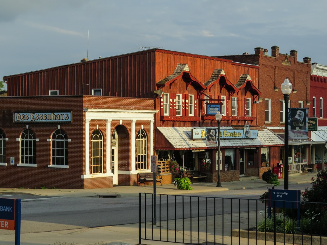 Across an intersection is “Des Dutch Essenhouse,” designed to appeal to the Amish Country tourist crowd (they even have some Amish buggies inside that they’ve turned into booths).