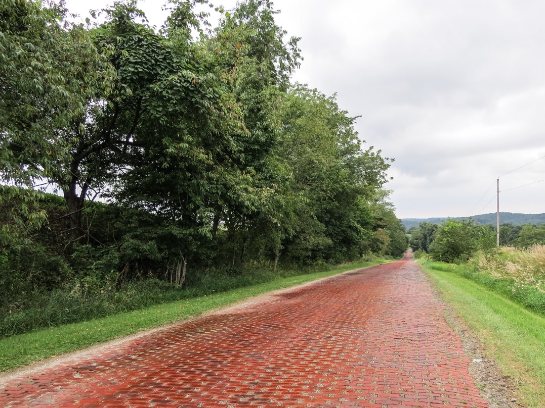 As I drove through the countryside, I came across a very odd stretch of road: a brick cobblestone road. At one point, many or even most of the paved roads in Ohio’s cities and towns were made of brick; one can often still see the brick underneath modern pavement and some cities and towns have preserved some of their brick roads (for example, Columbus’s famous German Village). However, in the thousands of miles I have driven across and around rural Ohio, this was the first time I’ve come across a stretch of brick road. And it really is just a short stretch, in the middle of nowhere. I have no idea why it exists this way, but it was certainly interesting to come across.