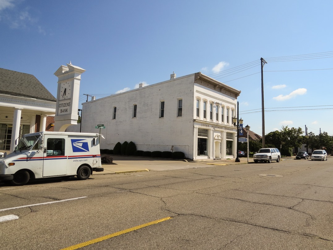 Having headed north the previous trip, this time I headed south, towards another section of Appalachian Ohio. Soon I found myself in Hocking County, which is one of the most picturesque counties in Ohio, home to the Hocking Hills, a hilly and forested area that is one of Ohio’s nicer natural attractions. The county seat of Hocking County is the town of Logan (population 7,152, salute!). This region of Ohio was rich in natural resources, including coal, iron, and clay. Unlike many towns in this region of Ohio, Logan has not experienced a population decrease, probably because the area is such a tourist destination, helping to sustain the economy.![]()