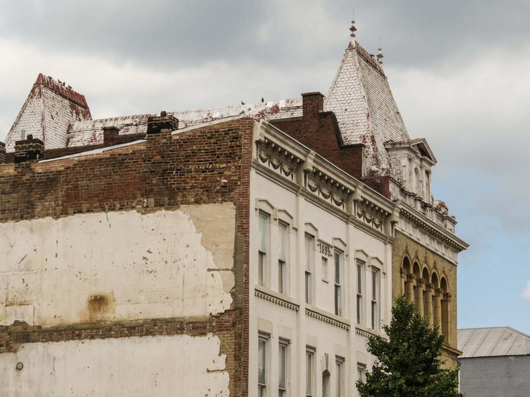 This look at the tops of some of these buildings shows how they’ve aged. The building on the left was built in 1895, nearly 120 years ago.