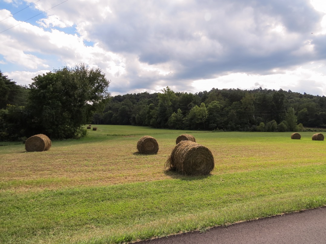 When farmers grew hay or alfalfa and baled them in rectangular bales, they would go around and pick up the bales from the fields and (if growing it for their own use) then stack them under a shed or in a barn somewhere. The larger round bales protect the hay better (although they will ferment, which horses won’t eat but cows will) and as a result many farmers do not even bother to move the hay after baling. Instead, they simply let the bales sit where they are and go and get some when needed. A week ago I was stuck behind a tractor pulling a trailer on which numerous of these large bales were precariously perched (and not secured). Even though I kept my distance, I couldn’t help but wonder what one of those bales would do to my car (and me) if it fell off the trailer and rolled down the road into my vehicle.