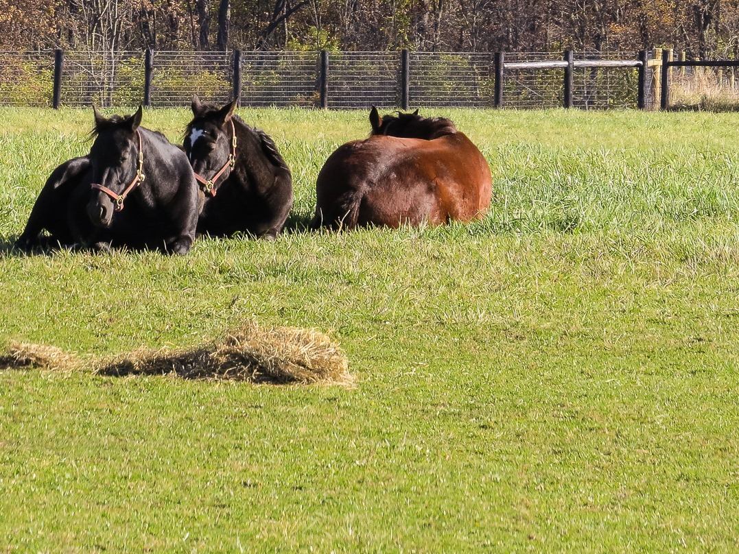 You can’t blame these horses for wanting to lie down for a bit—they look very comfortable.