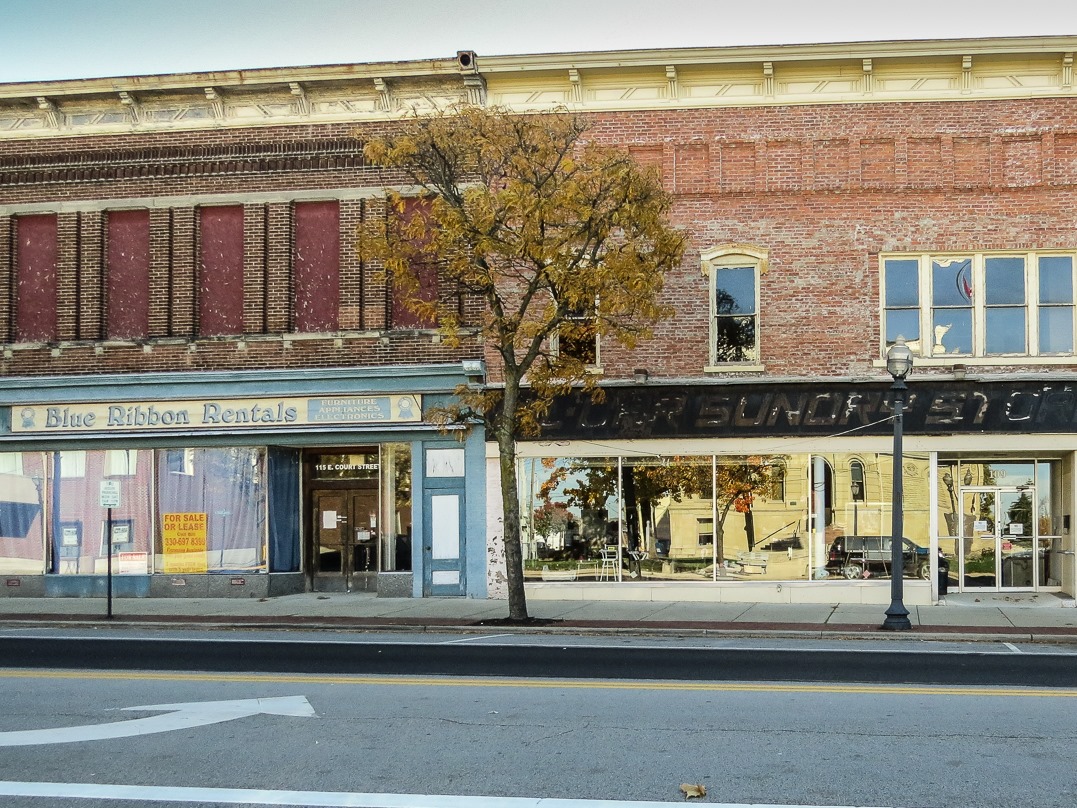 Even towns like Washington CH, which are relatively prosperous, don’t quite know what to do with their old past. There’s a Wal-Mart in town, naturally, and such businesses have a real effect on the downtowns of older towns and villages. What do you do with a building like the above building? It is good that “Court House Fitness” has a home here, but the way we engage in commerce is just different now than it was 100 years ago, when this building might have been constructed, and it is not always possible to repurpose such structures.