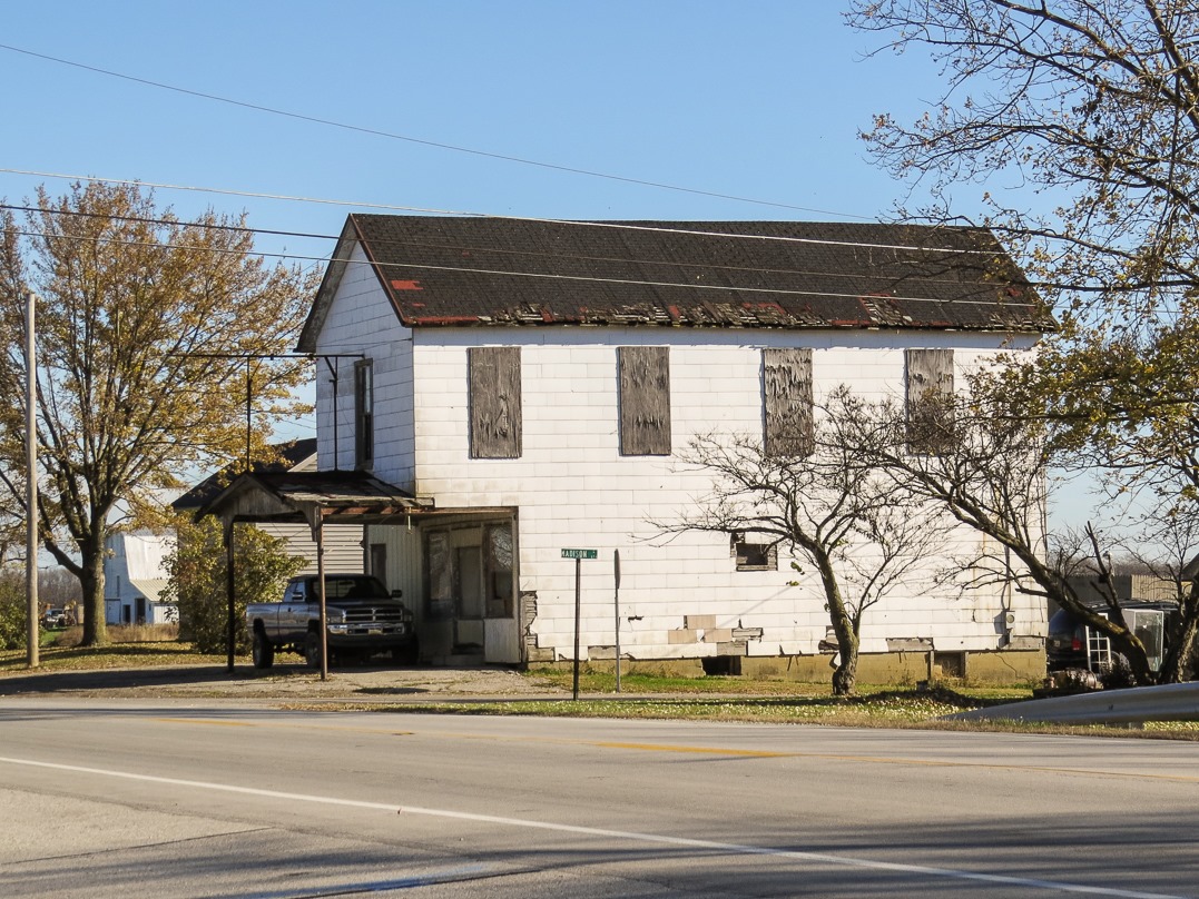 Somewhat to the southwest of Columbus is the village of Mount Sterling (population 1,782, salute!). I am not 100% sure what this old establishment, seen here from the rear, is being used for—it may now be the home of a heating & cooling company. Its original purpose, located next to the train tracks, was almost certainly industrial.