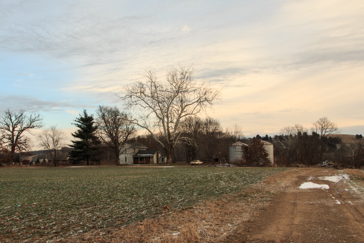 Farmland in the winter so often has a desolate feel to it—the empty fields seem like wastelands and the leafless trees like skeletons.