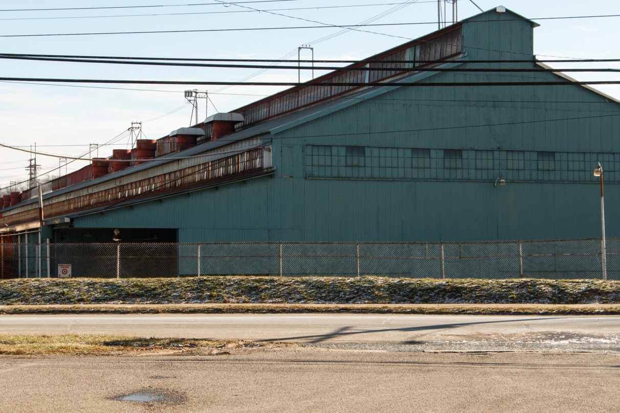 It is nice to find an industrial plant in eastern Ohio that has not been demolished or shuttered, or soon will be so. This is the AK Steel Plant in Zanesville, along the Muskingum River. It produces flat-rolled steel (carbon, stainless, electrical) for automobiles, manufacturing, and construction. AK Steel began in 1899 as The American Rolling Mill Company out of Middletown, Ohio. It survived the downturn in the American steel industry by partnering with a Japanese steel company (Kawasaki Steel Corporation, the “K” in AK Steel). The jobs (a couple hundred) are great, but sadly, some AK Steel plants have been serious polluters.