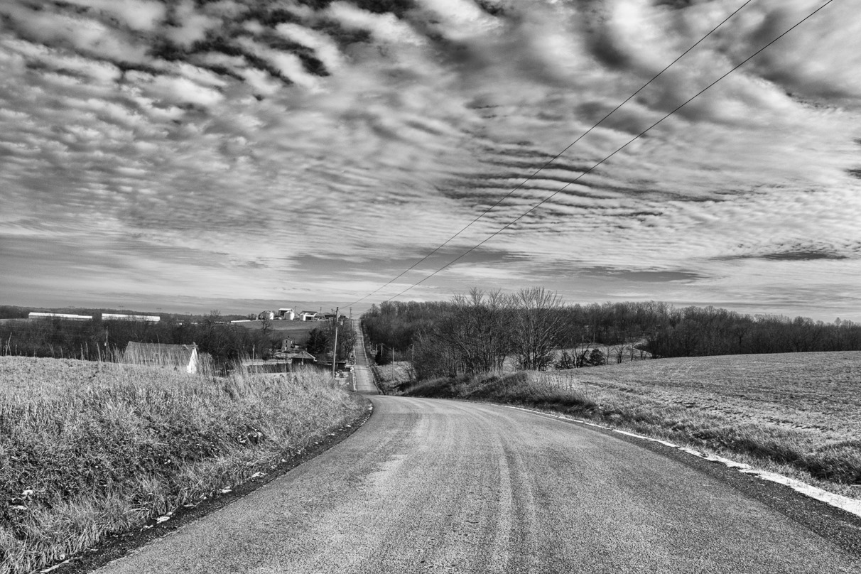 This road view shot is a great example of how black and white photography can really help bring out the texture in the sky.