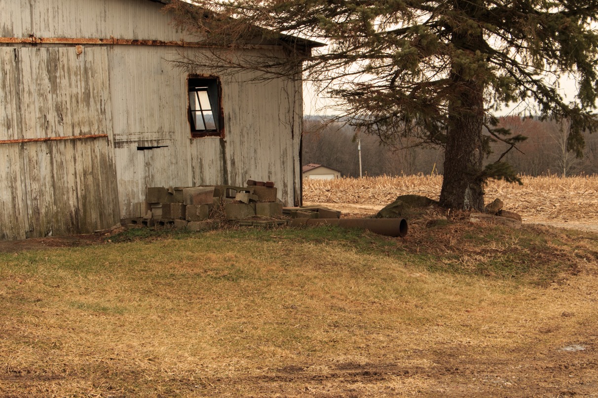 This old low barn is not desolate, but it is still fairly lonely.