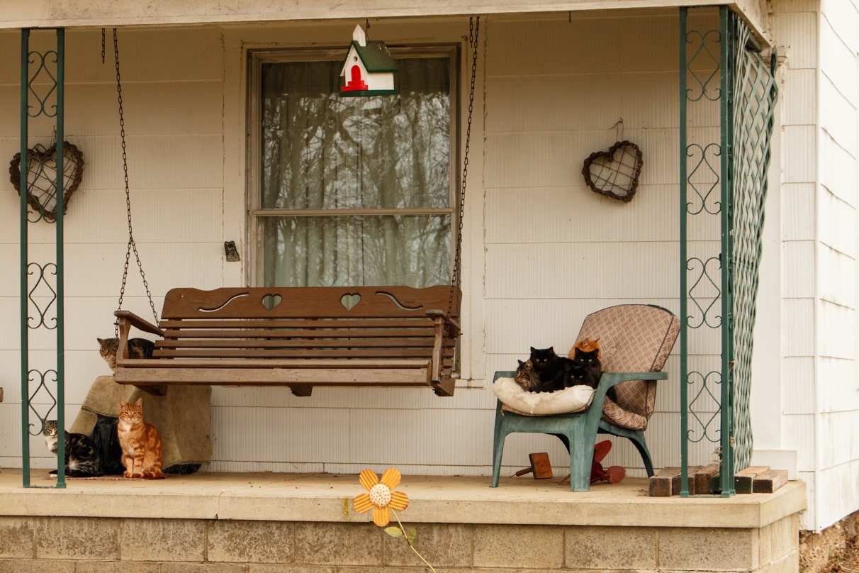 This was actually the second “cat house” I’ve seen in my excursions. The first one had more cats (there are only eight in this photograph), but these cats are more at ease than the ones at the first house—who were probably expecting dinner.