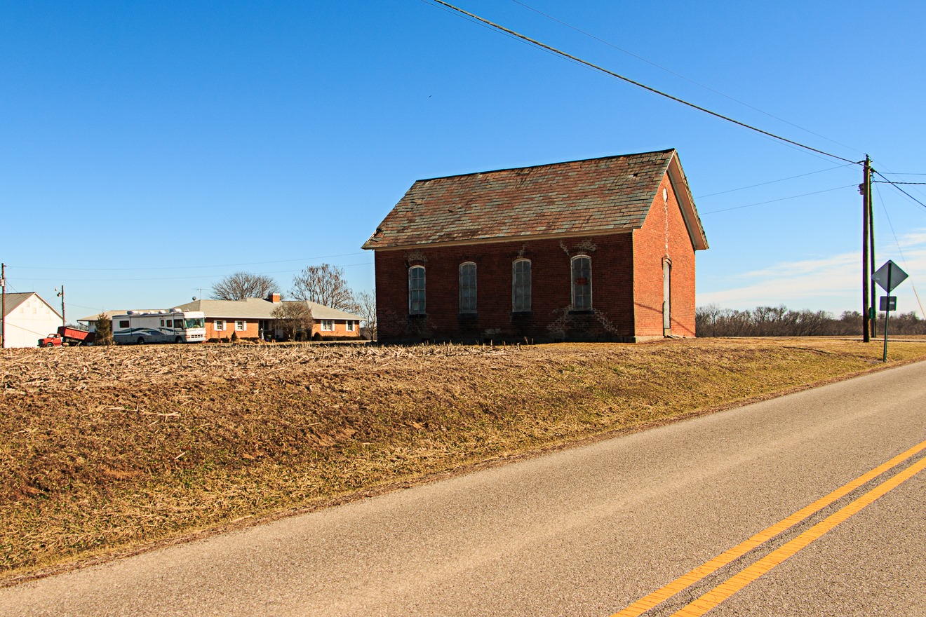 Throughout rural Ohio one can find the remains of one-room schoolhouses dotting the countryside. Since there were at one point many hundreds of these in existence, even the fraction that have survived is a sizable number. Few are well kept-up, though some have been repurposed. This one is just slowly crumbling.