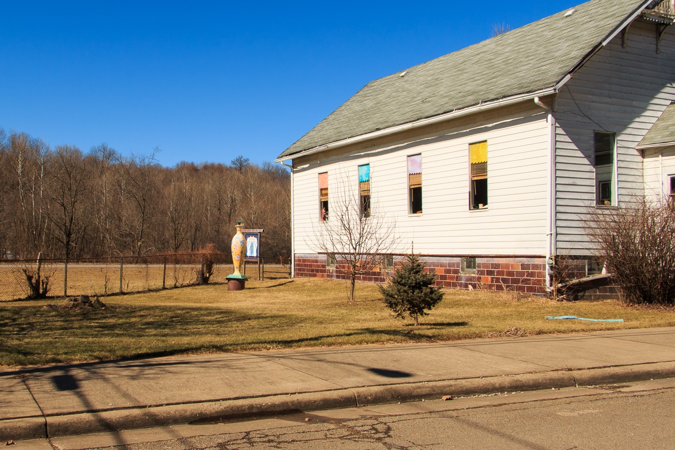 The whole area, though, is essentially a large grave marker to the departure of big coal. Abandoned buildings and mines, ghost towns, ruined company stores, sites of former mining disasters all dot the landscape here. One example of that, where the above photograph was taken, is the spot called Rendville, Ohio. The above photograph serves merely to document the odd, large colored urns that I keep finding in odd spots around Ohio, but there is not much more to Rendville than the urn. Rendville has the smallest population of any incorporated municipality in the state of Ohio, with a population of only 36 (salute!).