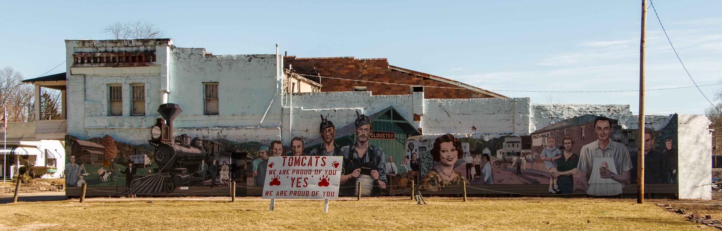 Most Ohio villages have some sort of mural commemorating the place’s history. Glouster has one of my favorites, above. Note the prominence of the coal miners in the middle.
