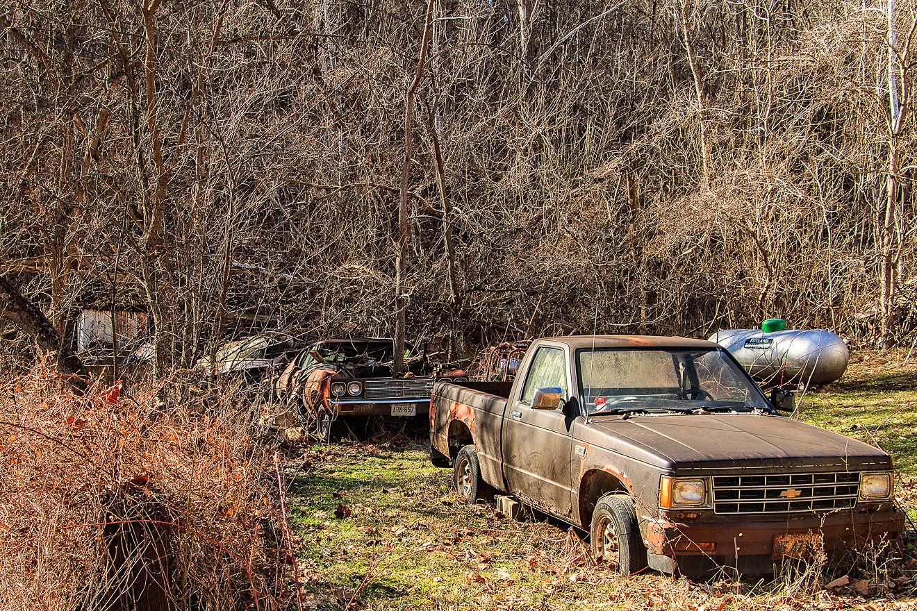 Unlike woods in the west, where I am from, here much of the woods are still populated, if sparsely. This photograph is actually an example; it was taken in a forested area near the Hocking River not far from Guysville along U.S. 50. But even in the woods you’ll have homesteads pop up here and there. This one was one of those homesteads with a lot of junked cars on the property. Pay close attention and you’ll notice a quite sizable tree has grown up right through one of the vehicles. Makes you wonder exactly how long it’s been there, doesn’t it?
